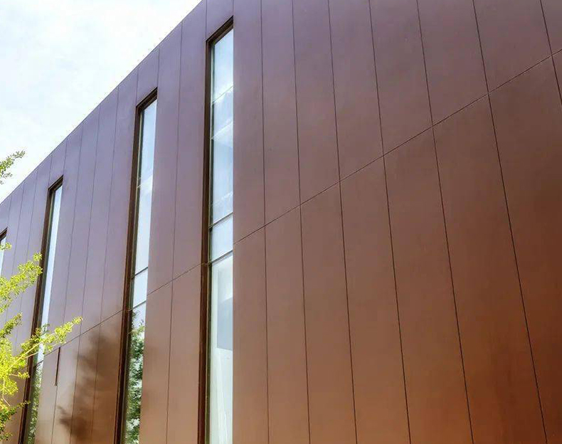 鋁蜂窩板裝飾面板的材質(zhì)一般選用3003、5005等牌號,合金成份低的1100板材較少采用。裝飾面采用噴涂或輥涂形式,涂層為聚酯或氟碳漆,外墻板最好選用噴涂板,并且要求三涂以上,漆層厚度≥40μm,這樣才能保證涂層的耐久性。
